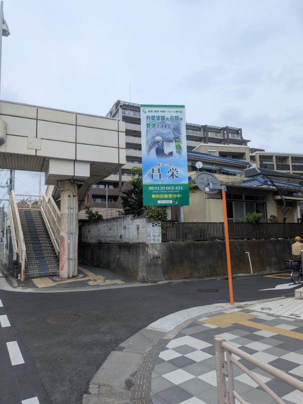 交通量の多い交差点のため、お車で通られる際にも目に留まりやすい場所に設置しております。