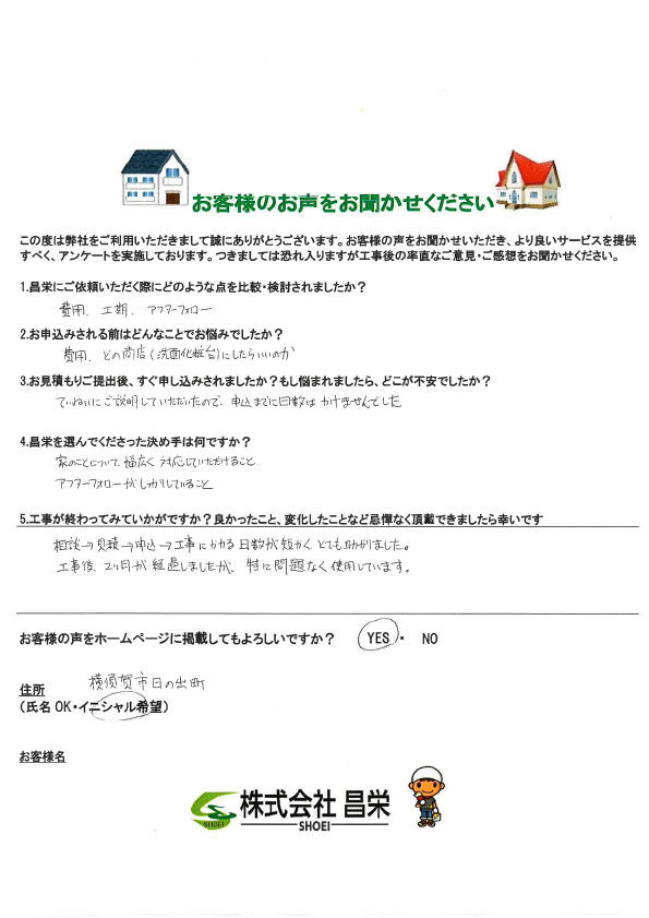 工事後、2か月が経過しましたが、特に問題なく使用しています。