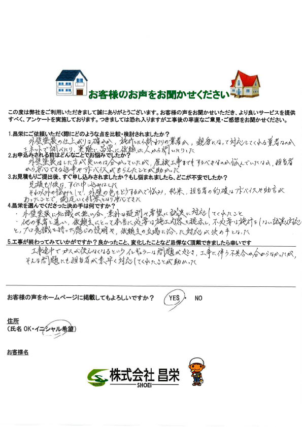 外壁塗装の仕上がりは確かか、施工したら終わりの業者か、親身になって対応してくれる業者なのかをネットで調べたり、実際に昌栄に依頼した人から聞いたりした