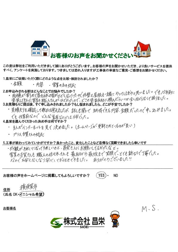 外観がきれいになってうれしいとの、昌栄さんにお願いしてよかったなと。