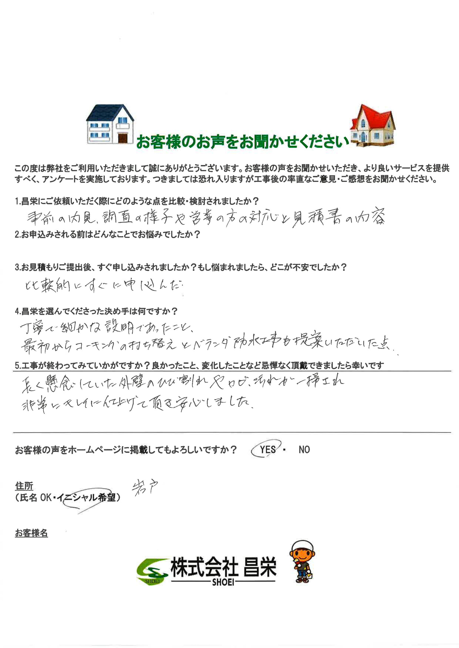 昌栄を選んでくださった決め手は何ですか?